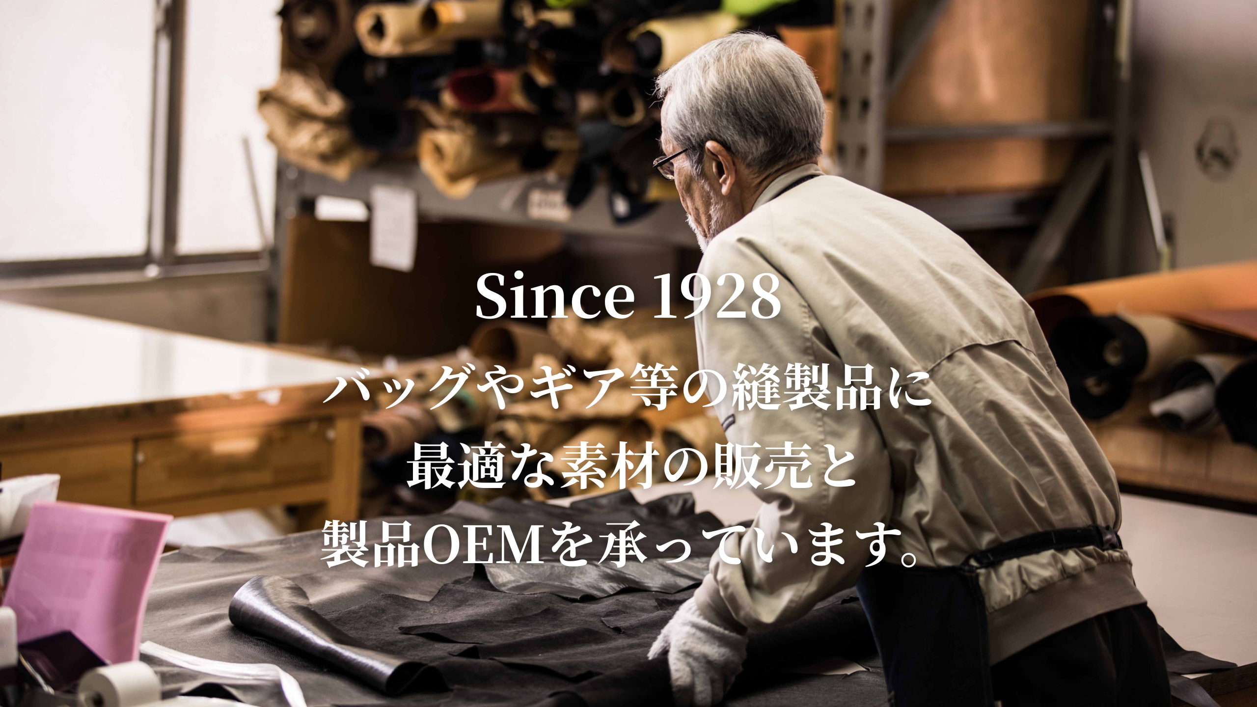 お知らせ 年末年始の営業および出荷スケジュールのご案内2025年12月19日 【出展のお知らせ】ファッションワールド東京 秋 20252025年8月25日 【お知らせ】ホームページをリニューアルしました2025年8月24日 創業97周年。バッグやギア等の縫製品に最適な生地の販売と、OEMへの想いを代表メッセージでご紹介します。 メッセージを見る 企画・素材開発から生産・検品まで、国内外ネットワークで最適な製品づくりをサポートします。 OEMの流れ 天然繊維・合成繊維・本革・合成皮革など、多様なバッグ用素材を取り揃えています。 素材ラインアップ 素材・加工・OEM・ショールームなど、よくあるご質問と回答をまとめています。 よくある質問